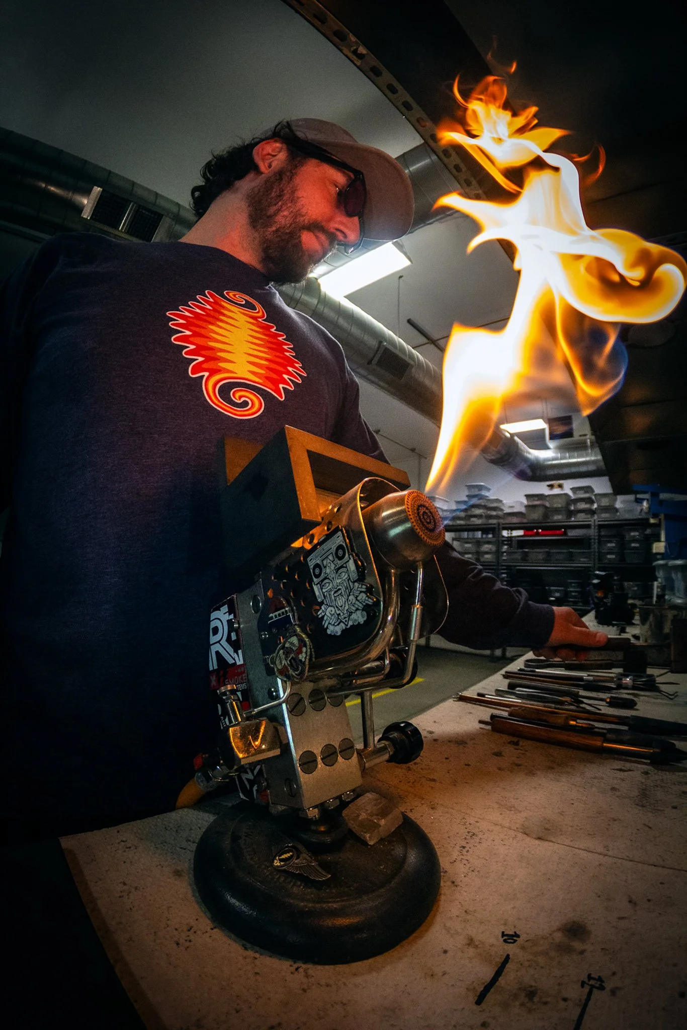 In 2010, Ben discovered glassblowing at a studio in Longmont, Colorado. He quickly built a small home studio in his garage and became fully immersed in the material. About a year later, Sam joined him, and what began as casual sessions soon outgrew the garage. The two moved into a shared industrial warehouse space, creating a communal glass studio focused on experimentation and production.