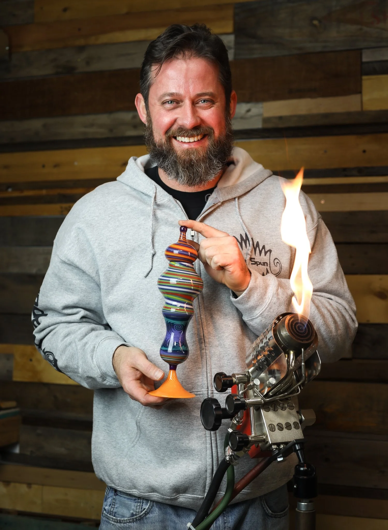 Ben is a borosilicate flameworker based in Fort Collins, Colorado. Born in 1984 in Boulder and raised in the foothills town of Lyons, his upbringing was deeply rooted in the outdoors, shaping a lifelong connection to natural forms and processes.