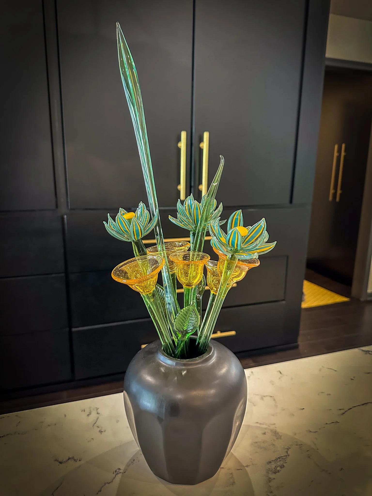 A lifelong artist, Ben discovered lampworking glass in 2010 and has since focused his practice on borosilicate. His work is influenced by nature and botany, sacred geometry, Japanese aesthetics, and the craftsmanship of Greene & Greene architecture, emphasizing flow, balance, and intentional design.