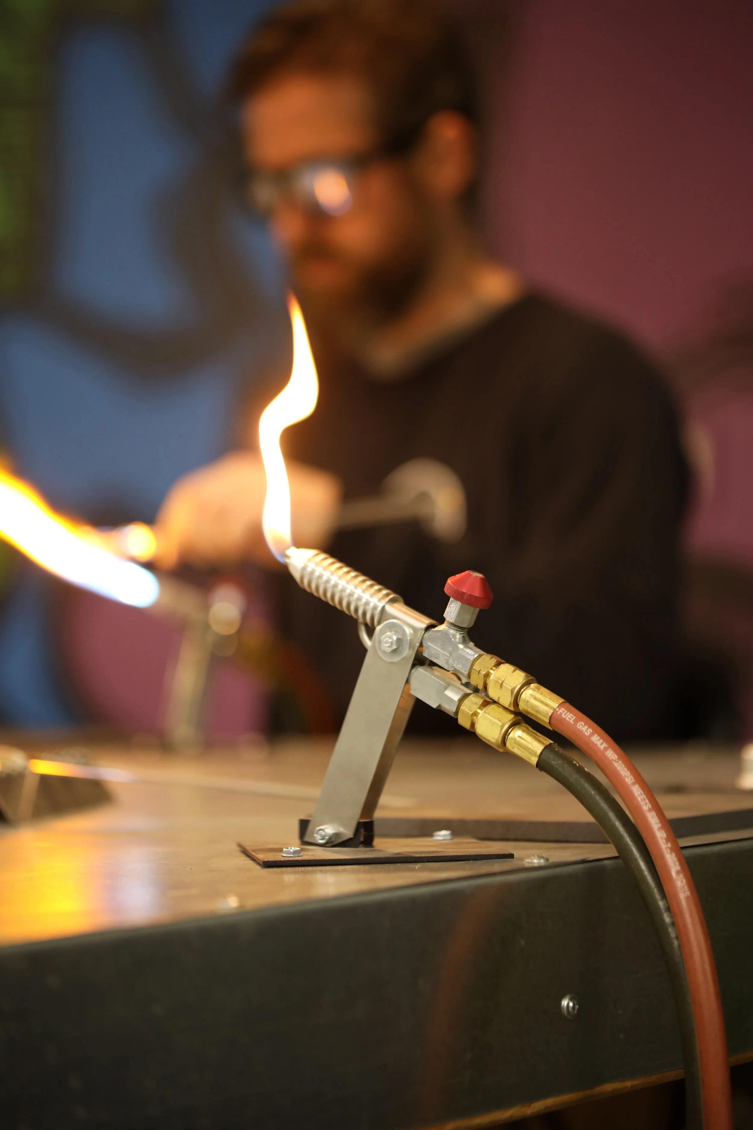 Our private one-on-one lessons offer a personalized approach to learning glassblowing, tailored entirely to your experience level and creative goals. From introductory fundamentals to advanced techniques, each session features customized instruction, focused demonstrations, and hands-on guidance in a professional studio setting. Ideal for artists seeking skill development or individuals looking for a meaningful, immersive experience, these private lessons are designed to be efficient, inspiring, and deeply rewarding.